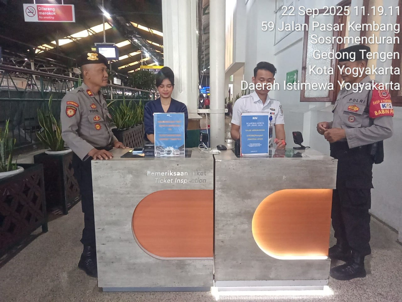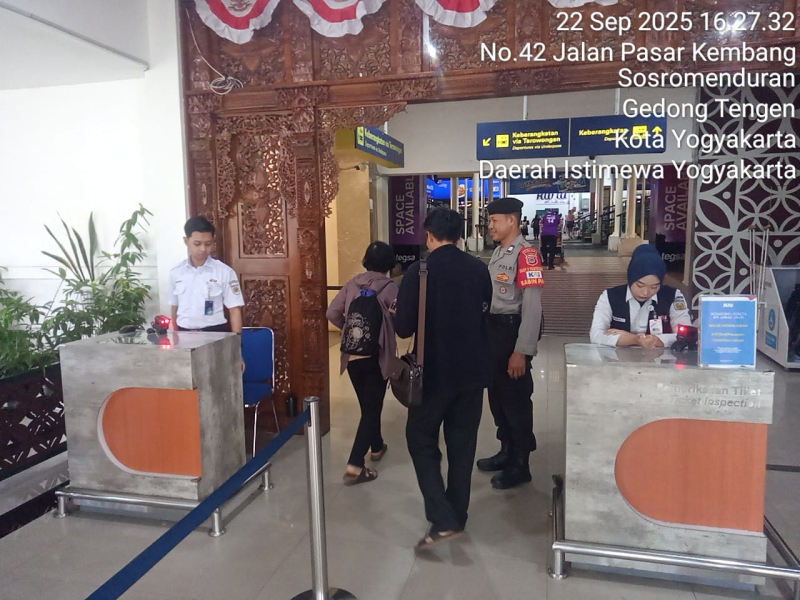 Personel Subditwaster Ditpamobvit Polda DIY melaksanakan pemantauan situasi keamanan di seputaran Stasiun Tugu Yogyakarta yang meliputi situasi Boarding pass, pantauan penumpang kereta api yang memasuki stasiun Tugu Yogyakarta. Personel juga dialogis dengan petugas Boarding Pass dan Situasi naik turun penumpang kereta api di stasiun Tugu Yogyakarta.