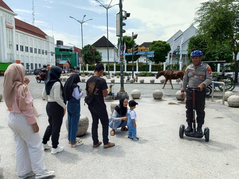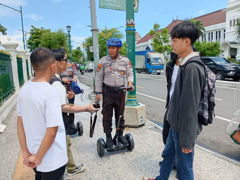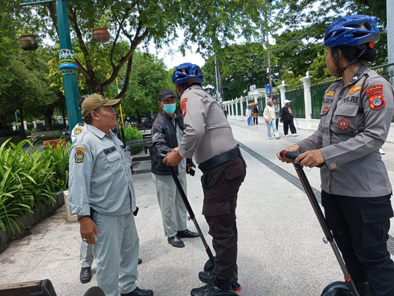 Anggota Team satu bus listrik melaksanakan kegiatan patroli dialogis dengan memberikan himbauan kamtimbas kepada para wisatawan antisipasi gangguan kamtibmas. Selain itu anggota team satu bus listrik melaksanakan patroli dengan Segway serta Drone di kawasan titik nol, monitoring situasi arus lalu lintas dari segala penjuru yang keluar masuk kawasan titik nol.