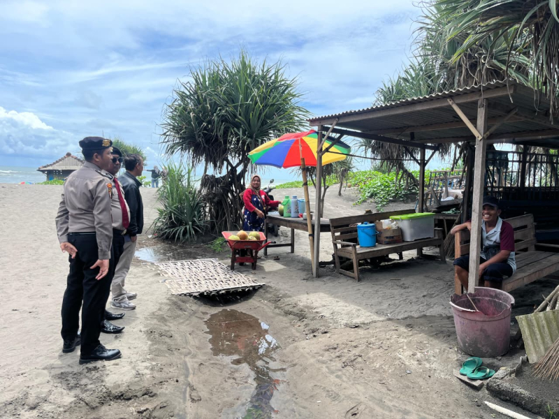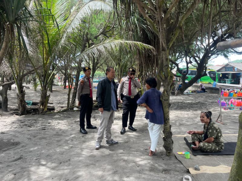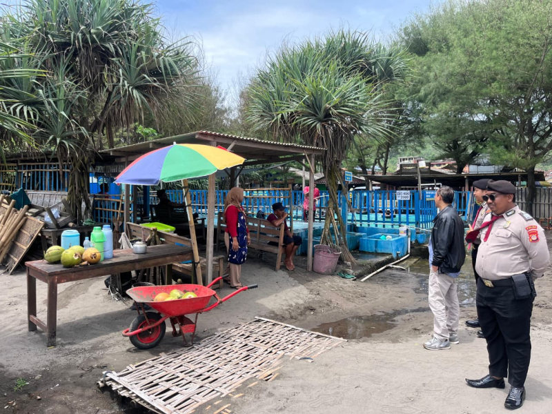 Personel Subditwisata Ditpamobvit Polda DIY melaksanakan kegiatan rapat dan pemantauan terkait penataan payung di Pantai Parangtritis bersama Dinas Pariwisata Kabupaten Bantul. Sabtu, 22 November 2025.