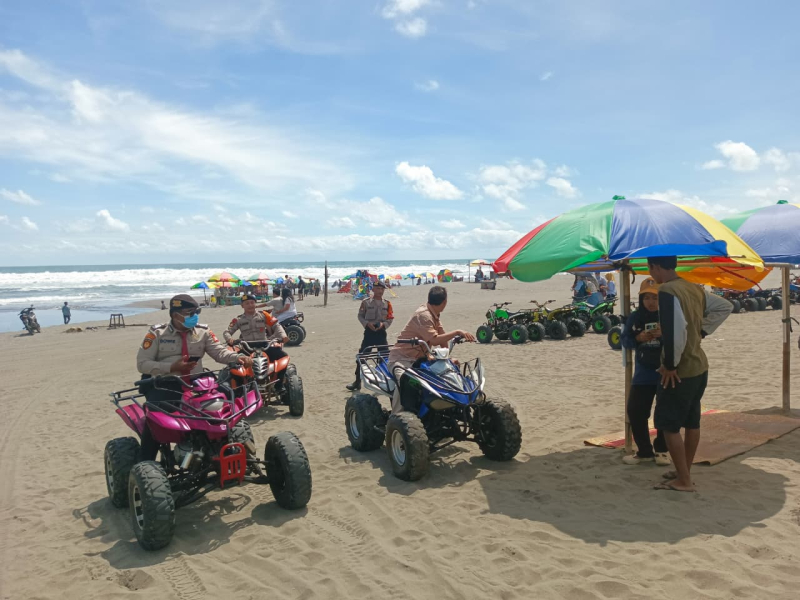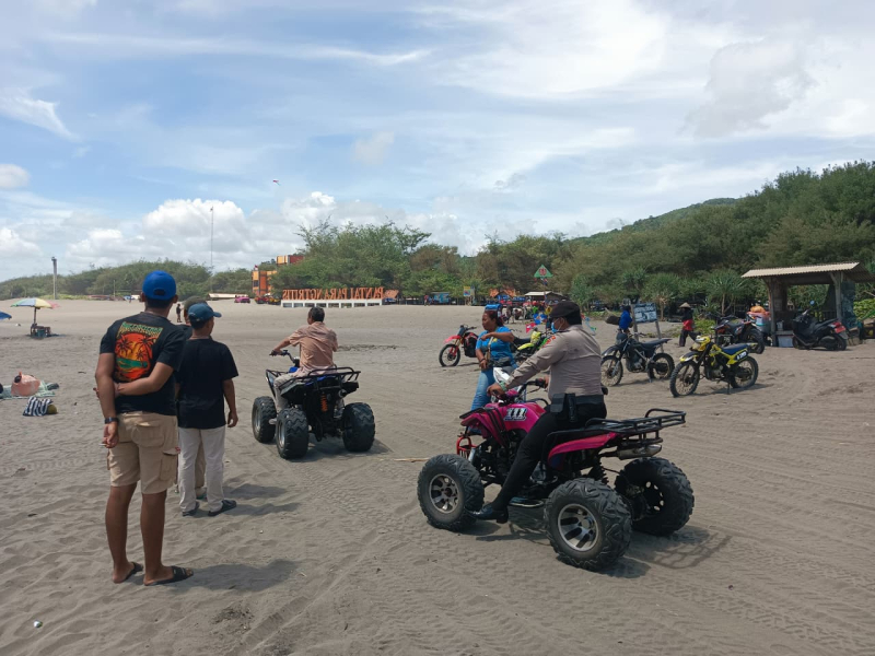 Personel Subditwisata Ditpamobvit Polda DIY melaksanakan kegiatan Patroli dan sambang dialogis di Kawasan Pantai Parangtritis, Kawasan Pantai Depok, Kawasan Pantai Baru, dan Jembatan Kabanaran. Sabtu, 29 November 2025.