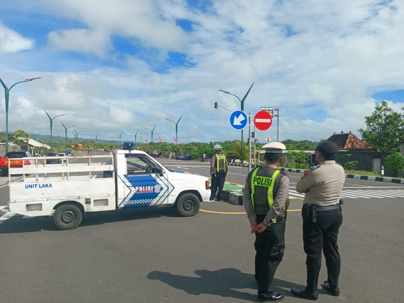 Personel Subditwisata Ditpamobvit Polda DIY melaksanakan kegiatan patroli dan pengamanan Hari Jadi Ke-79 Kelurahan Parangtritis di JJLS sampai dengan Laguna Depok. Selasa, 11 November 2025.