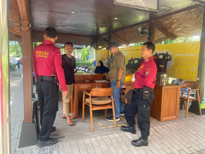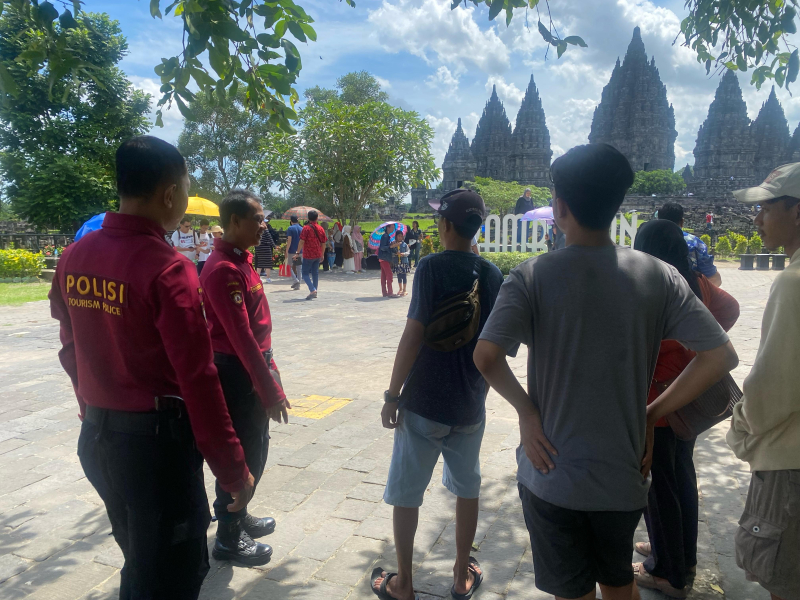 Personel Subditwisata melaksanakan kegiatan pengamanan wisatawan masa ramai libur Lebaran 1446 H. di Candi Prambanan dengan memberikan himbauan antisipasi gangguan kamtibmas serta sosialisasi terhadap barang bawaan. Adapun jumlah pengunjung yang masuk Candi Prambanan kurang lebih dua belas ribu pengunjung dengan didominasi pengunjung keluarga.