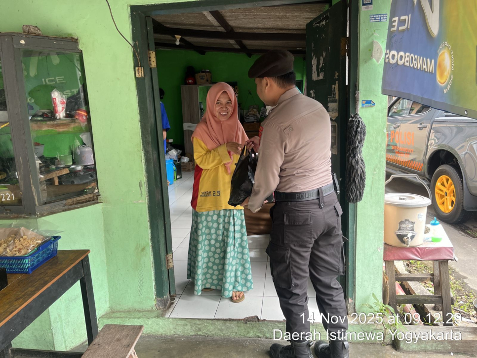 Personel Ditpamobvit Polda DIY, melaksanakan kegiatan Bakti Sosial dengan memberikan sembako kepada Jaga Warga di sekiataran Mapolda DIY pada hari Jum'at, 14 November 2025. Hal ini merupakan kegiatan sosial Ditpamobvit Polda DIY, program Nuwun Sewu yang rutin diberikan kepada yang membutuhkan serta merupakan tindak-lanjut dari program unggulan Ditpamobvit dalam proses ZI.
