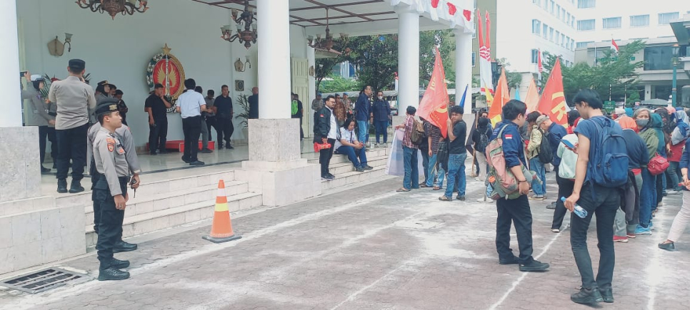 Pukul 12.40 WIB giat Audiensi selesai masa aksi meninggalkan komplek DPRD DIY. Situasi selama aksi unjuk rasa di DPRD DIY, berjalan tertib dan aman.
