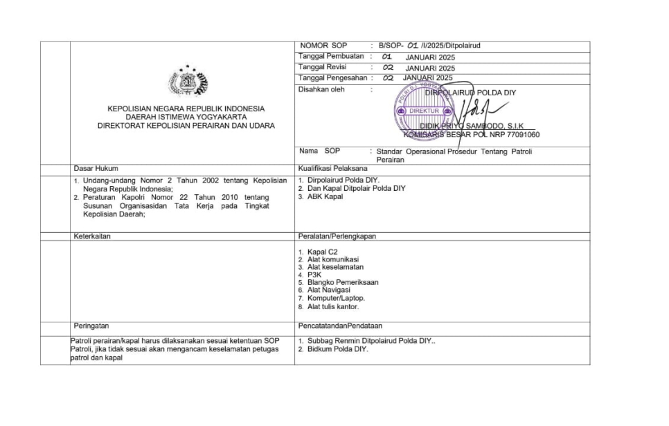 SOP Patroli Perairan Dit Polairud Polda DIY