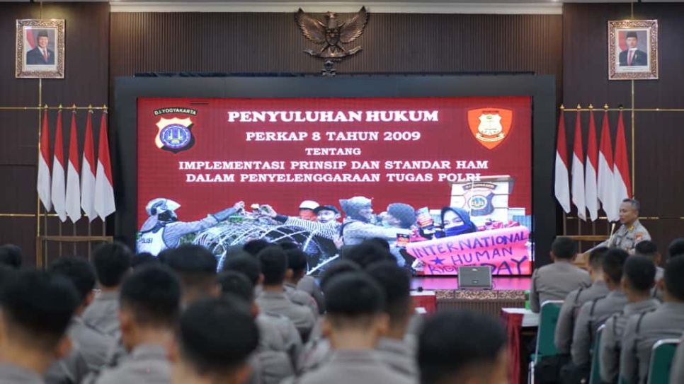 Dalam rangka meningkatkan pemahaman personel terhadap penerapan prinsip dan standar Hak Asasi Manusia (HAM) dalam pelaksanaan tugas kepolisian, Bidang Hukum (Bidkum) Polda DIY menyelenggarakan kegiatan Penyuluhan Hukum Perkap Nomor 8 Tahun 2009 tentang Implementasi Prinsip dan Standar HAM dalam Penyelenggaraan Tugas Polri.
