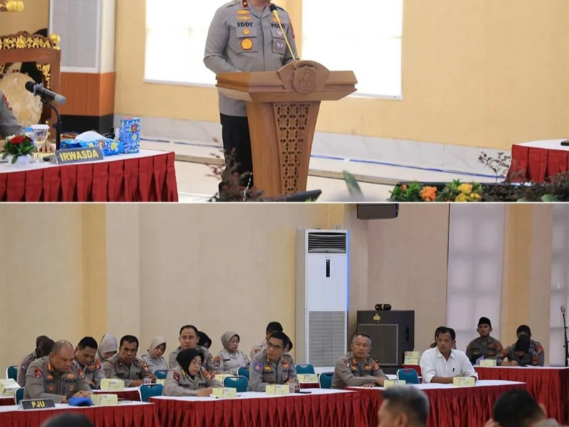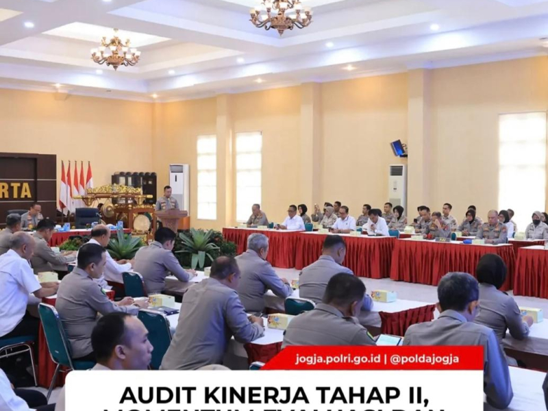 Wakapolda DIY Brigjen Pol Eddy Djunaedi, S.I.K., membuka kegiatan Taklimat Awal Audit Kinerja Itwasda Polda DIY Tahap II T.A.2025, Senin 3 November 2025 di Gedung Anton Soedjarwo, Mapolda DIY. Kegiatan tersebut turut dihadiri oleh Itwasda Polda DIY Kombes Pol I Gusti Ngurah Rai Mahaputra, S.I.K., M.H., Para Pejabat Utama Polda DIY, para Kapolres Jajaran, serta perwakilan personel dari seluruh satker Polda DIY.