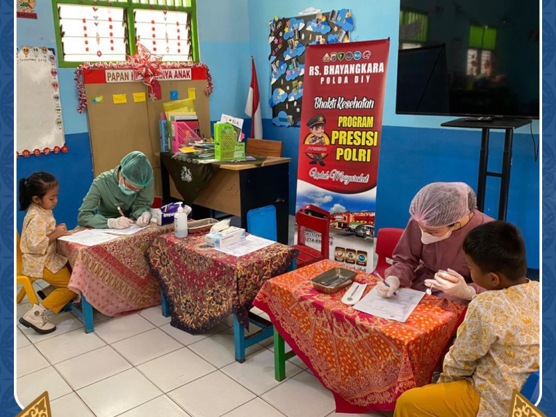 Rabu, 24 September 2025 Personel RS Bhayangkara Polda DIY melaksanakan kegiatan Pemeriksaan Gigi bagi Anak-anak TK Kemala Bhayangkari Kalasan, Sleman dalam rangka program Polri untuk Masyarakat.