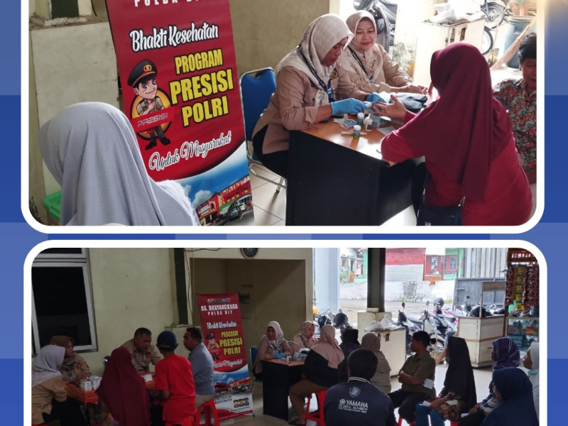 Rabu, 3 Desember 2025 - Personel RS Bhayangkara melaksanakan Kegiatan Polri Untuk Masyarakat berupa Pemeriksaan Kesehatan Gratis bagi Masyarakat Umum di Pasar Kalasan, Sleman. Pemeriksaan Kesehatan meliputi Pemeriksaan Tekanan Darah, Gula Darah Sewaktu, Asam Urat, Kolesterol, dan Pemberian Obat serta Vitamin.