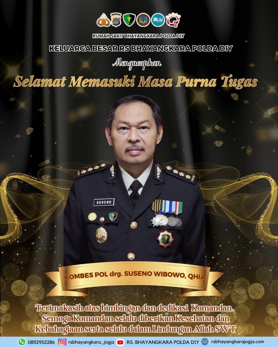 Keluarga Besar Rumah Sakit Bhayangkara Polda DIY mengucapkan:Selamat Memasuki Masa Purna Tugas