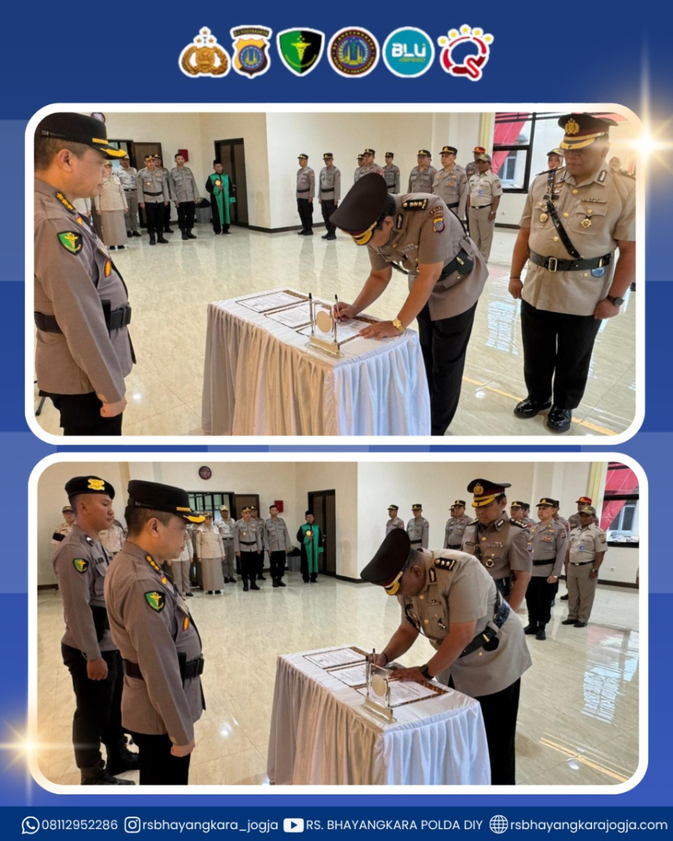 Upacara Serah Terima Jabatan Kepala Rumah Sakit Bhayangkara TK. III Polda DIY dilaksanakan pada Senin, 10 November 2025, bertempat di Aula Tribrata Rumah Sakit Bhayangkara Polda DIY. Jabatan Karumkit diserahkan dari Kombes Pol (Purn) drg. Suseno Wibowo, QHIA kepada AKBP Dr.dr. D. Aji Kadarmo, Sp.FM., DFM., M.H. Kabiddokkes Polda DIY, dr. Fajar Amansyah, Sp.PD.,FINASIM.,CMSC.,QHIA.,AIFO-K bertindak sebagai Inspektur Upacara.