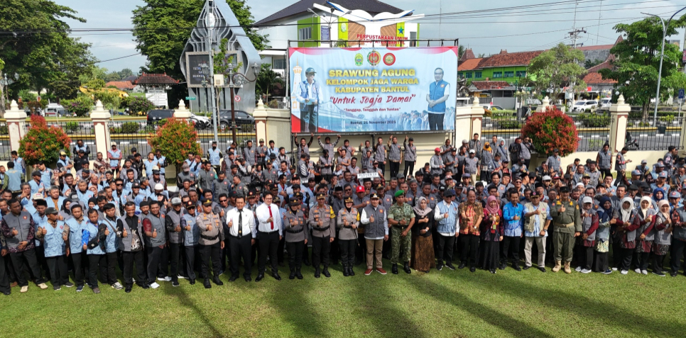 jogja.polri.go.id -Humas, Polres Bantul melaksanakan Apel Besar Srawung Agung Kelompok Jaga Warga di halaman Mapolres Bantul pada Jumat (21/11/2025) pagi. Kegiatan ini dipimpin langsung oleh Bupati Bantul, H. Abdul Halim Muslih, dan turut dihadiri Kapolres Bantul AKBP Novita Eka Sari SH SIK MH, Dandim 0729/Bantul Letkol Kav. Fikri Nurheldi, Sekda Bantul Agus Budiraharja SKM M.Kes, serta perwakilan dari unsur Forkopimda dan instansi terkait. Sebanyak 500 anggota Jaga Warga dari 17 kapanewon hadir mengikuti apel.Dalam amanatnya, Bupati Bantul menegaskan kembali nilai falsafah Jawa "Titi, Tentrem, Kerta, Raharja" sebagai dasar dalam menjaga keamanan dan ketertiban masyarakat. Ia menjelaskan bahwa keteraturan yang dijalankan dengan ketulusan akan melahirkan ketenteraman, yang kemudian menumbuhkan semangat perjuangan hingga bermuara pada kesejahteraan masyarakat. Falsafah tersebut, menurutnya, sejalan dengan prinsip bahwa keselamatan rakyat merupakan hukum tertinggi.