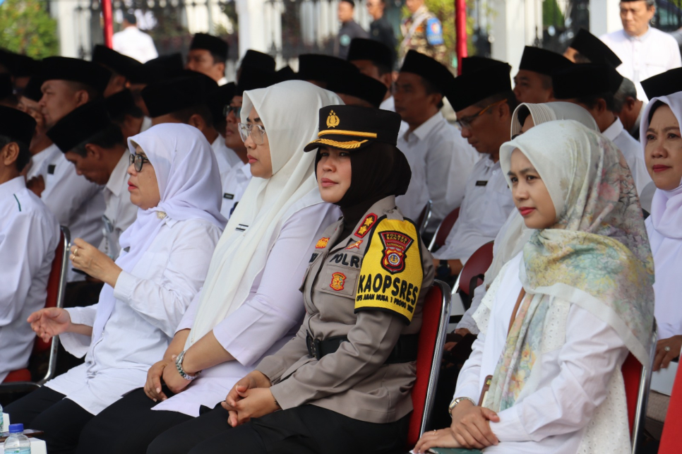 jogja.polri.go.id -Humas, Kapolres Bantul AKBP Novita Eka Sari menghadiri Apel Hari Santri Nasional 2025 yang digelar di Lapangan Paseban, Bantul, pada Rabu (22/10/2025). Kegiatan tersebut diikuti oleh ribuan santri, para kiai, serta jajaran Forkopimda Kabupaten Bantul.Dalam amanatnya, Bupati Bantul Abdul Halim Muslih menyampaikan bahwa apel Hari Santri menjadi agenda rutin hasil kerja sama antara pemerintah daerah dengan panitia hari santri, sebagai bentuk apresiasi sekaligus motivasi bagi para santri untuk terus meneguhkan jati diri dan semangat keilmuan.