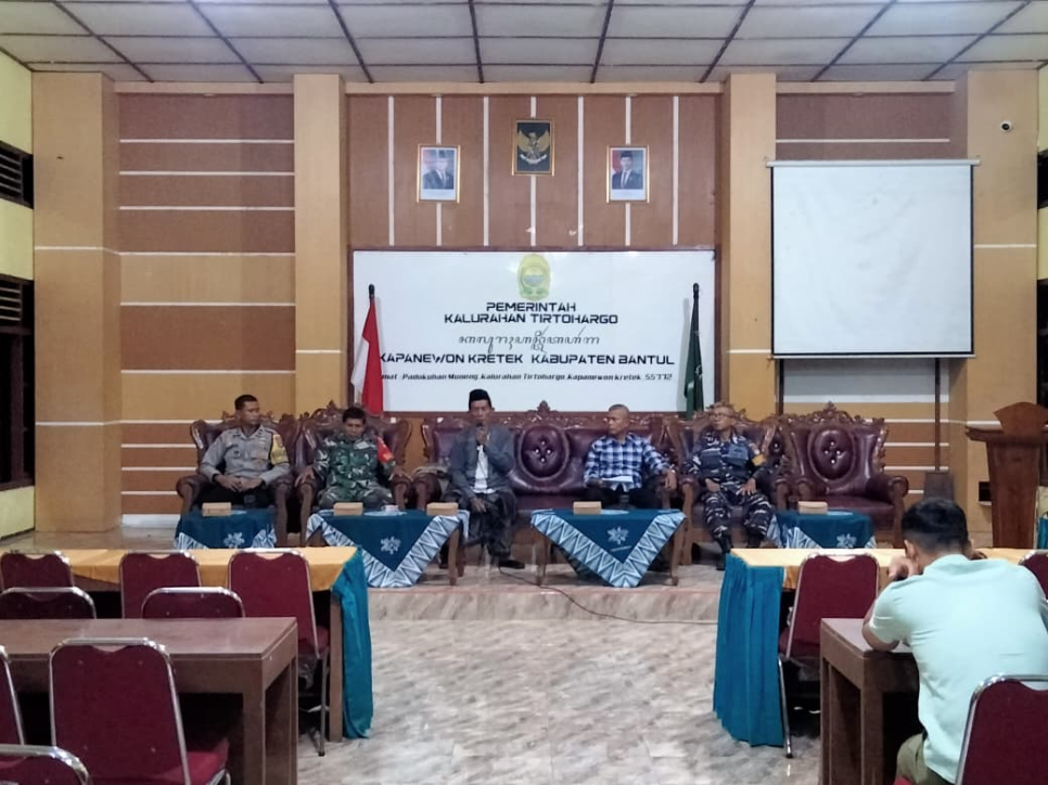 jogja.polri.go.id - Humas, Bhabinkamtibmas Kalurahan Tirtohargo Aipda Tohari ikuti Rapat Koordinasi pengamanan Perayaan Natal 2025 dan Tahun Baru 2026 di Aula Kalurahan Tirtohargo pada Jumat (5/12/2025) pukul 19.30 WIB dipimpin Kepala Jawatan Keamanan Kapanewon Kretek Parjono.Rakor dihadiri Lurah Tirtohargo, pamong kalurahan, Babinsa Pelda Bekram, Bhabinpotmar Serda Hartono, FPRB, dan tokoh masyarakat. Pembahasan fokus penguatan koordinasi keamanan, kewaspadaan gangguan kamtibmas, serta kesiapan desa cipta suasana aman kondusif akhir tahun.