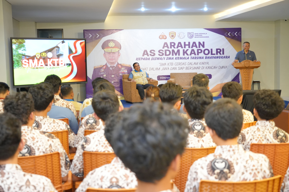 jogja.polri.go.id - Humas, As SDM Kapolri, Irjen Pol Dr. Anwar, S.I.K., M.Si, memberikan arahan dan motivasi kepada siswa-siswi SMA Kemala Taruna Bhayangkara (KTB) yang berlangsung di Global Darussalam Academy, Pakem, Sleman, Jumat 28 November 2025. Kegiatan yang mengusung tema "SMA KTB Cerdas Dalam Karya, Kuat Dalam Jiwa, dan Siap Bersinar di Kancah Dunia" ini diikuti oleh 120 siswa. Dan juga turut dihadiri oleh Direktur SMA KTB Brigjen Pol M. Arif Sugiarto, Direktur Yayasan Sunni Darussalam Ibu Aini Husna, M.Pd, beserta para mentor dan siswa-siswi SMA KTB.