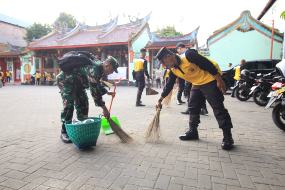 Hari Bhayangkara Semakin Dekat, Polda DIY Bersinergi dengan TNI dan Paksikaton Laksanakan Kerja Bakti di Klenteng Poncowinatan