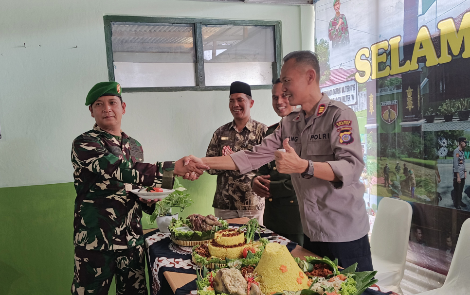 jogja.polri.go.id -Humas, Dalam rangka memperingati Hari Ulang Tahun (HUT) ke-80 Tentara Nasional Indonesia (TNI) yang mengusung tema "TNI Prima - TNI Rakyat - Indonesia Maju", sinergitas antara TNI dan Polri di Kapanewon Imogiri semakin diperkuat.Sebagai bentuk dukungan dan penghargaan, Kapolsek Imogiri AKP Wahyu Elang Elang Tri Buana, S.H., bersama Panewu Imogiri Slamet Santosa, S.I.P., M.M., melakukan kunjungan silaturahmi ke Koramil 10/Imogiri pada Minggu (5/10/2025).