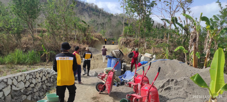 Menindak lanjuti arahan tersebut, Kapolsek Gedangsari AKP Suryanto,S.Pd melaksanakan kerja bakti bersama Koramil 0730/14 Gedangsari dan masyarakat membangun talud jalan di dusun Jatisari, Kal.Serut, Kab.Gedangsari, Selas, 21/11/2023.