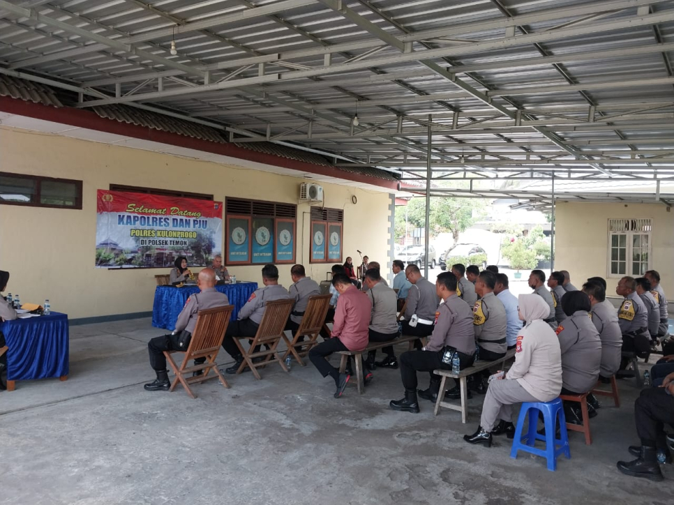 Kapolsek Temon memberikan paparan mengenai informasi kerawanan dan kondisi wilayah hukum Polsek Temon. Selanjutnya, Kapolres Kulonprogo, AKBP Nunuk Setyowati, memberikan arahan kepada anggota Polsek Temon.