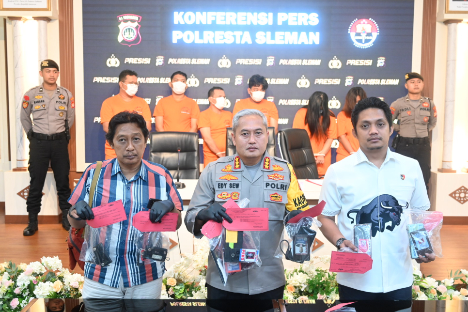 Kapolresta Sleman Kombes Pol Edy Setyanto Erning Wibowo, S.I.K., M.H, menjelaskan bahwa para pelaku menggunakan identitas palsu sebagai wartawan dengan kartu pers yang berasal dari beberapa media untuk meyakinkan korban.