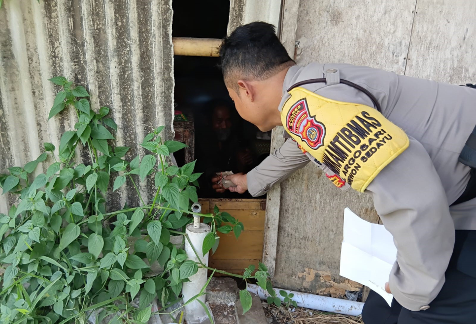 jogja.polri.go.id -Humas, Menindaklanjuti laporan masyarakat, Bhabinkamtibmas Kalurahan Argosari, Aiptu Agus Muslim, melakukan pengecekan terhadap sebuah rumah kosong yang diketahui telah lama dihuni oleh seorang pria lanjut usia di Dusun Gubug, Argosari, Sedayu, Bantul, Kamis (9/10/2025).Kegiatan tersebut turut melibatkan warga sekitar yang sebelumnya melaporkan keberadaan pria tersebut. Dari hasil pemeriksaan di lokasi, diketahui bahwa rumah kosong itu dihuni oleh seorang laki-laki berusia sekitar 70 tahun yang tidak diketahui identitasnya.