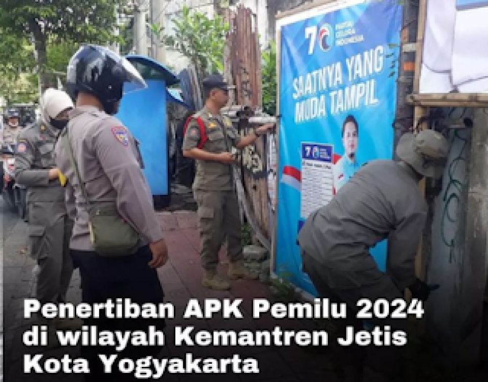 Penertiban yang dipimpin oleh Mantri Pamong Praja Kemantren Jetis Ibu Rini Rahmawati, bersama Ketua Panwaslu Kemantren Jetis Bertinus Sijabat, diawali dengan Apel Kesiapan di halaman Kemantren Jetis. Kegiatan ini mendapat dukungan dan pengamanan dari personel Polsek Jetis Polresta Yogyakarta.