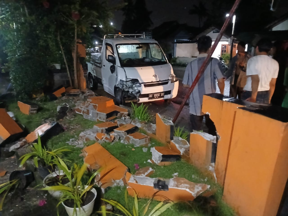 jogja.polri.go.id -Humas, Kecelakaan lalu lintas tunggal terjadi di wilayah Kapanewon Pajangan, Kabupaten Bantul, Rabu (14/1/2026) malam. Sebuah mobil Daihatsu Grandmax warna putih nomor polisi AB 8956 BT menabrak pagar tembok rumah warga, tiang teras, serta tiang lampu di Jalan Raya Iroyudan-Rutan Pajangan, Kalurahan Guwosari.Peristiwa tersebut terjadi sekitar pukul 22.50 WIB. Saat kejadian, kondisi cuaca gerimis, arus lalu lintas terpantau sepi, dan jalan beraspal dengan kondisi menikung serta dilengkapi penerangan jalan.