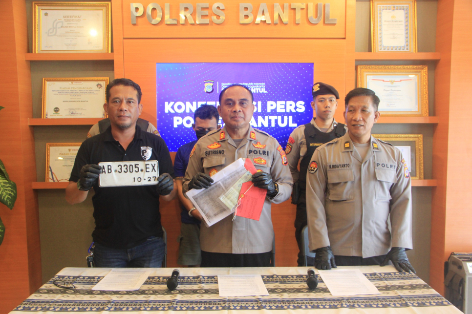 Dari tangan tersangka, polisi mengamankan sejumlah barang bukti, antara lain satu pasang pelat nomor asli AB-3305-EX, pakaian berupa kaos, celana jeans, dan celana pendek, serta perlengkapan rumah tangga seperti selimut atau bed cover, bantal, dan handuk yang dibeli dari hasil kejahatan.