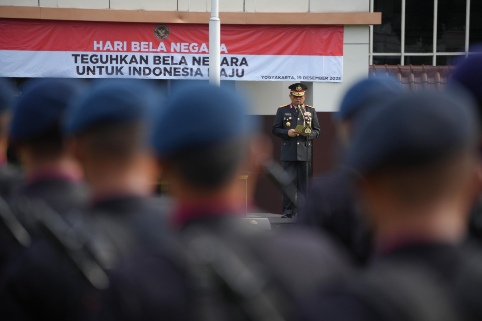 jogja.polri.go.id -Humas, Polda DIY menyelenggarakan upacara peringatan Hari Bela Negara ke-77 tahun 2025 di halaman Mapolda DIY, Jumat 19 Desember 2025. Upacara yang berlangsung khidmat ini dipimpin langsung oleh Wakapolda DIY Brigjen Pol Eddy Djunaedi, S.I.K., dan diikuti oleh jajaran Pejabat Utama serta seluruh personel Polda DIY.Peringatan tahun ini mengusung tema sentral: "Teguhkan Bela Negara untuk Indonesia Maju". Tema tersebut menjadi refleksi bahwa kemajuan bangsa merupakan buah dari kesiapsiagaan, disiplin, dan ketangguhan kolektif seluruh rakyat dalam menghadapi dinamika tantangan zaman yang kian kompleks.