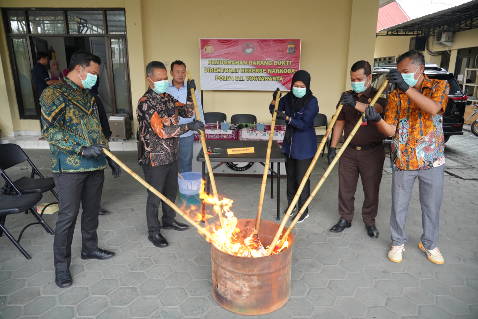 Proses pemusnahan dilakukan dengan cara membakar dan melarutkan barang bukti di hadapan para pejabat yang hadir, berlangsung dengan aman dan tertib. Melalui kegiatan ini, Polda DIY menegaskan komitmennya mendukung program Indonesia Bersinar (Bersih Narkoba) serta mengajak seluruh elemen masyarakat bersama-sama mewujudkan lingkungan yang sehat dan bebas narkotika.