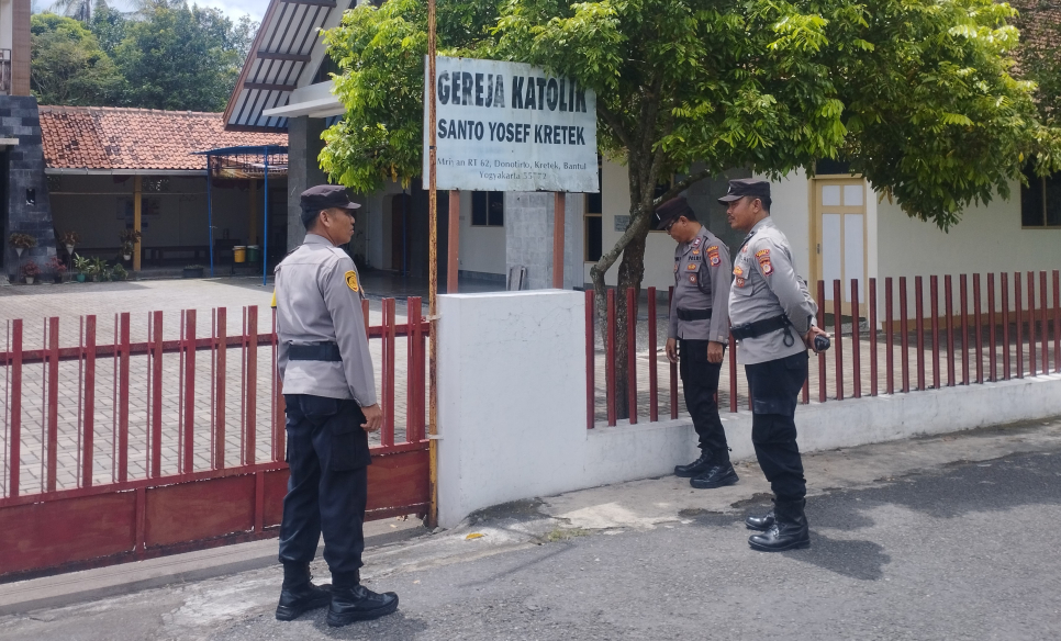 Dalam kegiatan tersebut, personel Polsek Kretek melakukan pemantauan situasi di sekitar gereja, mengecek aspek keamanan lingkungan, serta berdialog langsung dengan pengurus gereja.