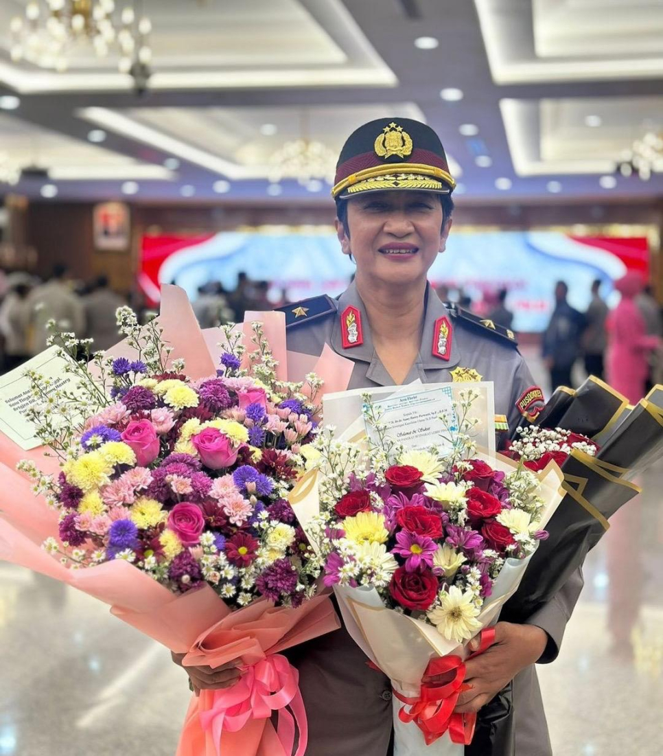 Salah satu dari 31 personel yang naik pangkat ialah Kombes Dr. dr. Sumy Hastry Purwanti, D.F.M.,Sp.F.