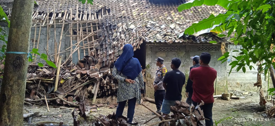 Akibat pohon wesen yang roboh tersebut menimpa rumah Harsono warga Sumurmuling, Gulurejo hingga genteng pecah dan kayu atap rumah (reng) patah.