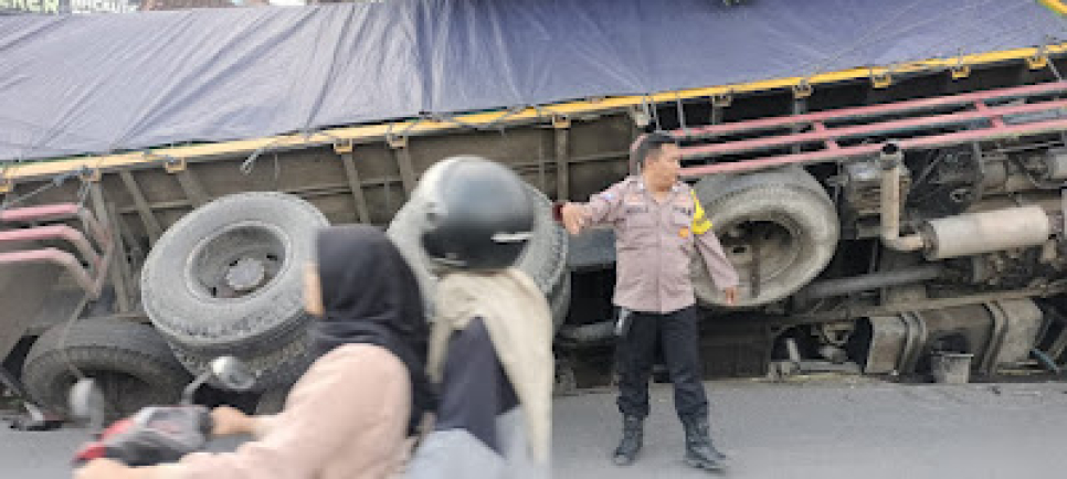 "Setelah ditarik perlahan-lahan akhirnya kendaraan truk tersebut dapat dievakuasi dan arus lalu lintas berjalan lancar," ucapnya.