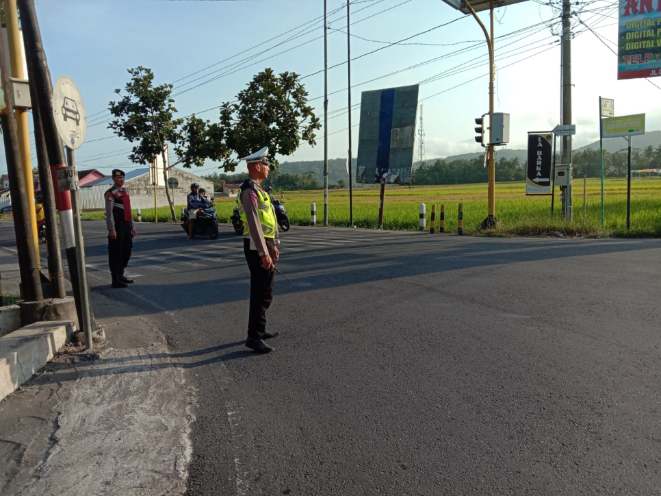 Kapolsek Nanggulan, Kompol Agus Setyo Pambudi, S.H., menegaskan bahwa kehadiran anggota Polri dalam kegiatan ini bertujuan untuk memberikan pelayanan kepada masyarakat serta mewujudkan situasi lalu lintas yang aman dan lancar.