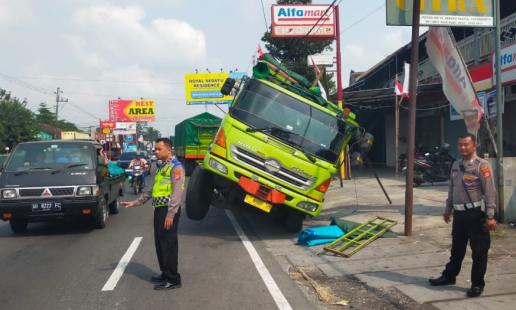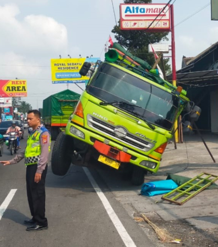 jogja.polri.go.id -Humas, Sebuah truk terperosok ke saluran air di Jalan Wates Km 11, tepat di ...