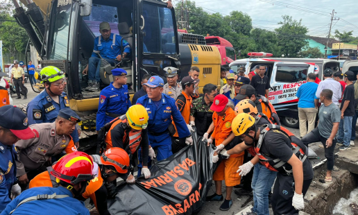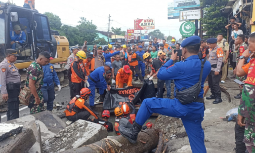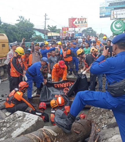 Upaya evakuasi pria pejalan kaki yang hanyut di gorong-gorong Jalan Wates, seberang Kantor PLN ...