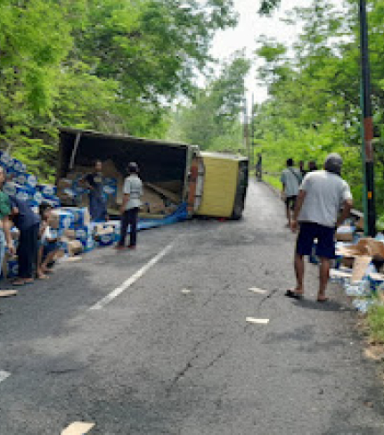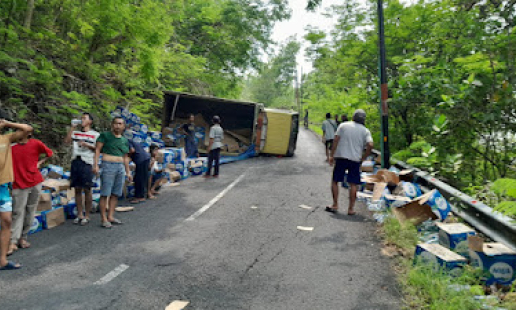 Diduga tak kuat menanjak, sebuah truk terguling di Jalan Kaliurang, Dlingo, Bantul, Sabtu ...