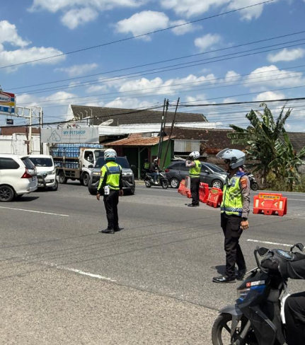 Sleman - Personel Satuan Tugas (Satgas) Kamseltibcarlantas Polresta Sleman melaksanakan ...