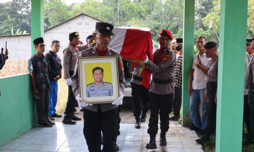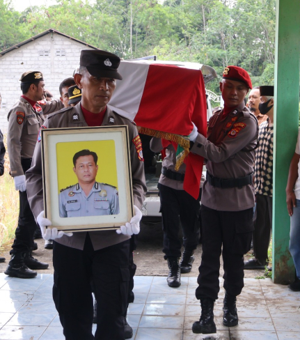 Sleman - Upacara pemakaman almarhum Aiptu Agus Bambang Hariyanta, personel Polsek Sleman ...