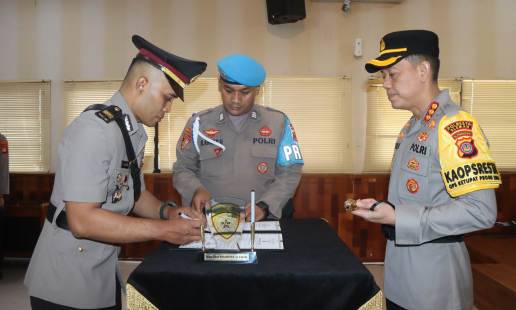 Sleman - Kapolresta Sleman, Adhitya Panji Anom, memimpin langsung upacara Serah Terima Jabatan ...