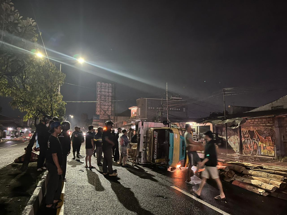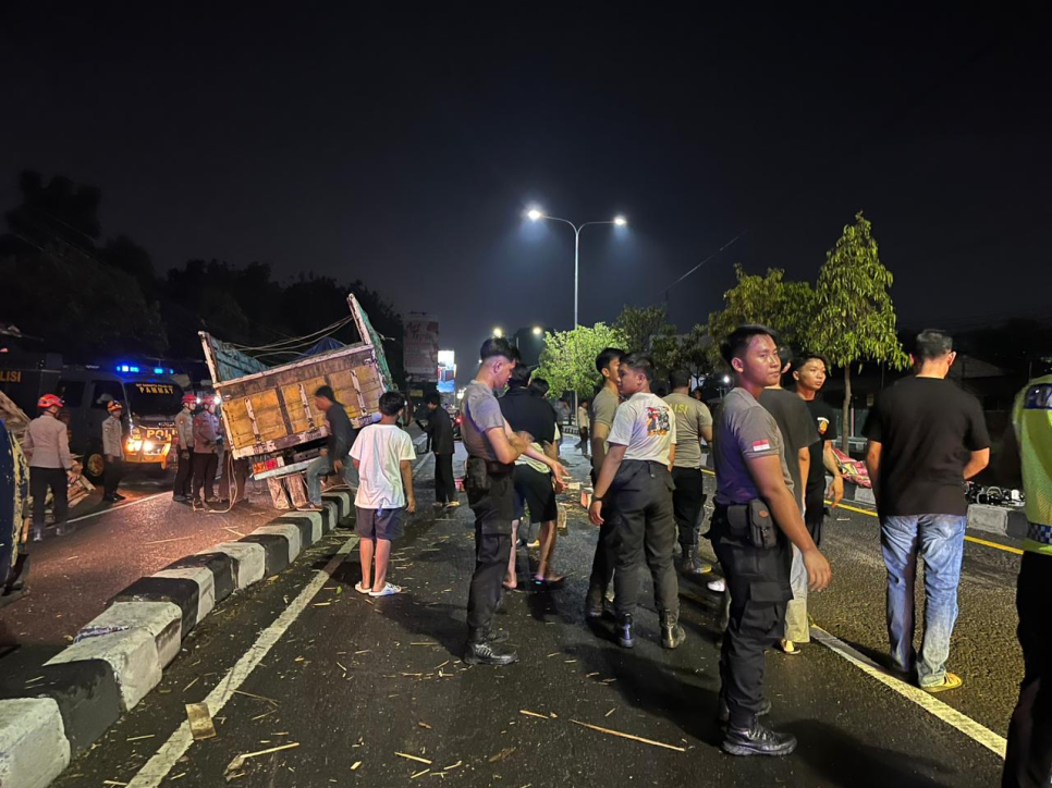 Anggota Sat Samapta Polresta Sleman Sigap Tangani Kecelakaan Truk Terguling di Ringroad Utara