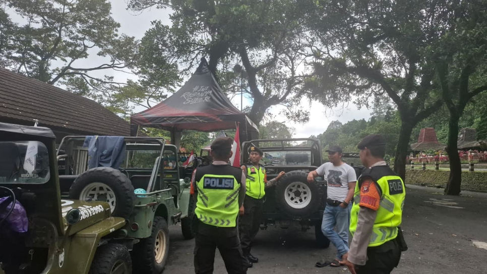Selain memberikan imbauan, anggota Pam Obvit turut memantau situasi sekitar, memastikan tidak adanya gangguan keamanan serta menciptakan rasa aman bagi para wisatawan yang sedang berlibur.