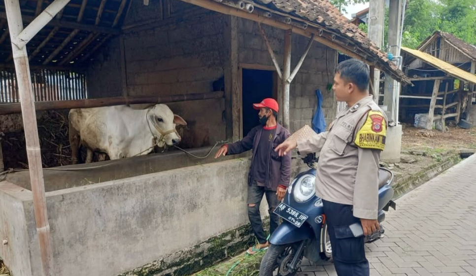 Aipda Dody juga meminta untuk selalu memperhatikan kesehatan hewan ternak mulai dari pemberian makan dan minum serta pemeriksaan kesehatan rutin sehingga jika ada salah satu hewan ternak yang sakit, maka dapat dilakukan antisipasi dan tidak menular ke hewan ternak lainnya.