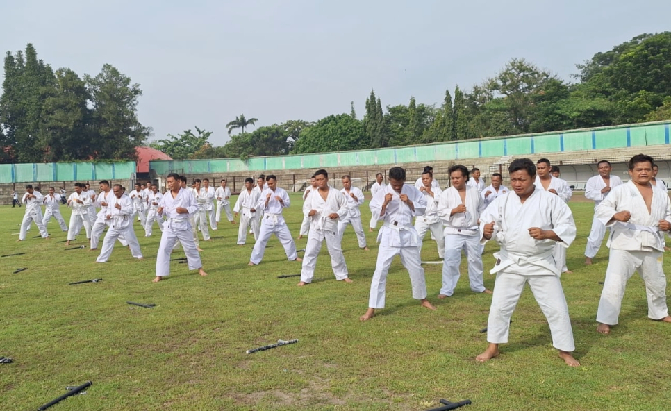 Sebanyak 141 personil Polresta Sleman memenuhi stadion Tridadi Sleman guna melaksanakan latihan beladiri Polri, beberapa materi yang dilatihkan meliputi teknik dasar beladiri polri, teknik beladiri polri tanpa alat dan teknik bela diri polri dengan alat.