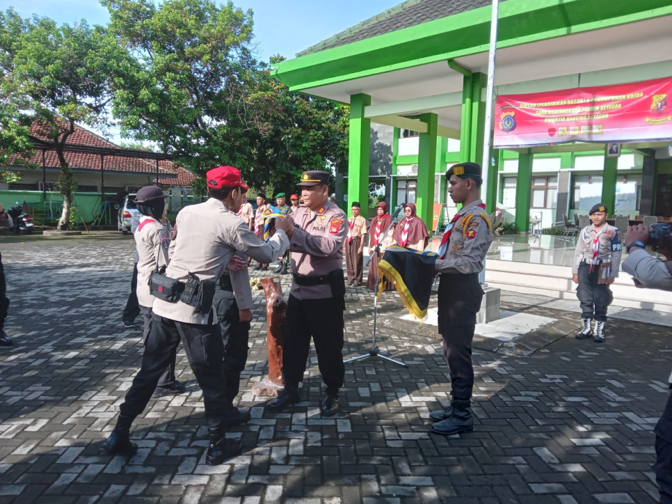 SLEMAN - Kapolsek Seyegan AKP Pujiono, S.H., M.M. bersama Bhabinkamtibmas Kalurahan Margodadi, Bhabinkamtibmas Kalurahan Margomulyo, piket Intelkam, serta Kanit Binmas Polsek Seyegan, menghadiri kegiatan Upacara Pendidikan Dasar dan Penempuhan Krida Saka Bhayangkara Polsek Seyegan Kwartir Seyegan.Kegiatan tersebut diikuti oleh 63 anggota Saka Bhayangkara Ranting Seyegan sebagai bagian dari pembinaan generasi muda dalam rangka menanamkan nilai-nilai kedisiplinan, kepemimpinan, serta cinta tanah air dan kepolisian.