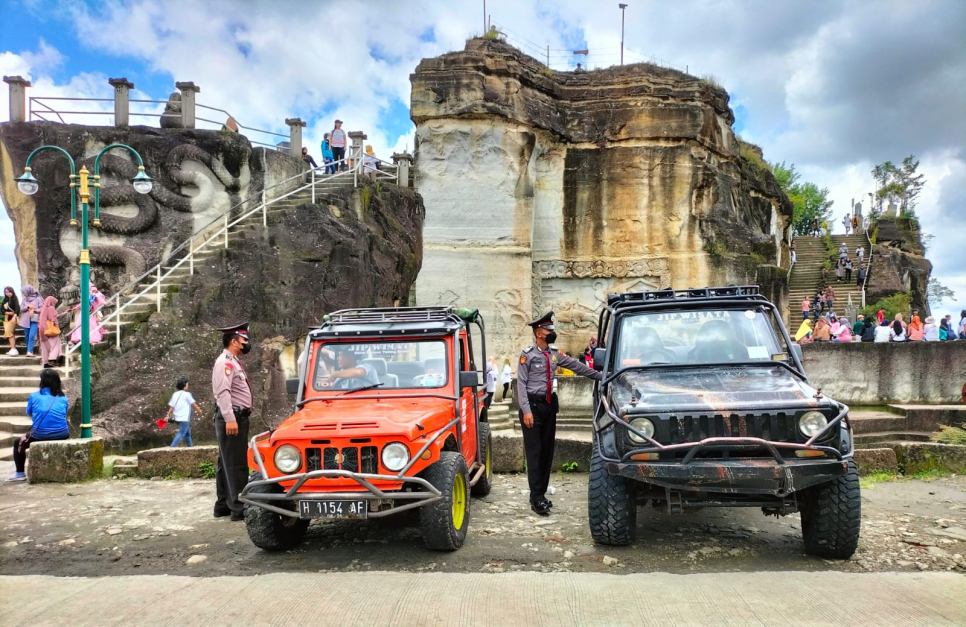 Dalam suasana libur Nataru yang sering kali ramai, kehadiran personil Unit Pam Obvit Samapta Polresta Sleman di Tebing Breksi memberikan rasa aman dan nyaman bagi pengunjung.