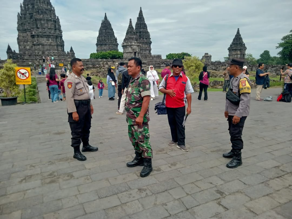 PRAMBANAN - Guna mengantisipasi lonjakan pengunjung di objek wisata selama libur cuti bersama, personil Polsek Prambanan Sleman melakukan pemantauan di obyek wisata Candi Prambanan Sleman.Kasi Humas Polresta Sleman, AKP Salamun, mengkonfirmasi bahwa pemantauan wisatawan di obyek wisata Candi Prambanan merupakan bagian dari upaya menjaga keamanan di kawasan wisata.