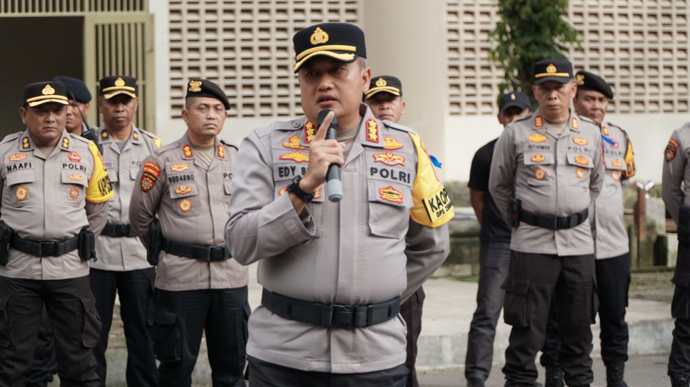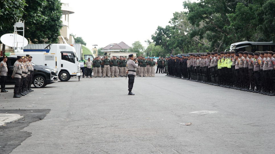 Sleman, - Jajaran Polresta Sleman melaksanakan pengamanan pertandingan sepak bola antara PSS Sleman dan Persiku Kudus yang berlangsung dengan aman dan kondusif. Apel pengamanan dipimpin langsung oleh Kapolresta Sleman, Kombes Pol Edy Setyanto E.W., S.I.K., M.H., serta diikuti oleh PJU Polda DIY, PJU Polresta Sleman, dan seluruh personel yang tersprint dalam kegiatan tersebut.Dalam arahannya, Kapolresta menekankan pentingnya kedisiplinan, kewaspadaan, serta komunikasi efektif antar-unit untuk memastikan seluruh rangkaian pertandingan berjalan lancar. Setiap personel dibekali kelengkapan operasional seperti rompi hijau, peluit, senter, jas hujan, dan perlengkapan pendukung lainnya demi menunjang tugas di lapangan.