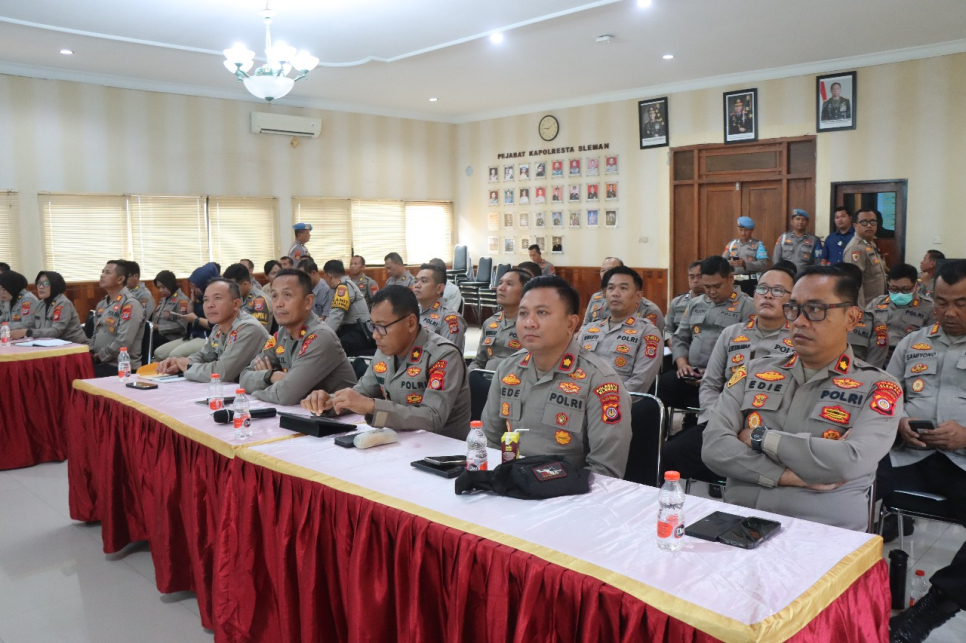 Sleman - Kapolresta Sleman Kombes Pol. Edy Setyanto Erning Wibowo, SIK, MH memimpin kegiatan Arahan Penyampaian Hasil Giat Apel Kasatwil Tahun 2025 yang dilaksanakan di lingkungan Polresta Sleman. Kegiatan tersebut diikuti oleh para Pejabat Utama (PJU) serta seluruh jajaran Kapolsek.Dalam arahannya, Kapolresta Sleman menyampaikan sejumlah poin penting sebagai tindak lanjut hasil Apel Kasatwil Tahun 2025 yang menjadi pedoman pelaksanaan tugas ke depan. Pada kesempatan tersebut, Kapolresta menegaskan rencana adanya pembaruan seragam khusus untuk Pamapta. Pembaruan ini dimaksudkan sebagai pengingat jati diri saat pertama kali turun ke lapangan sekaligus penegasan semangat awal Polri, yakni hadir untuk lebih melayani, bersikap profesional, dan semakin dekat dengan masyarakat.